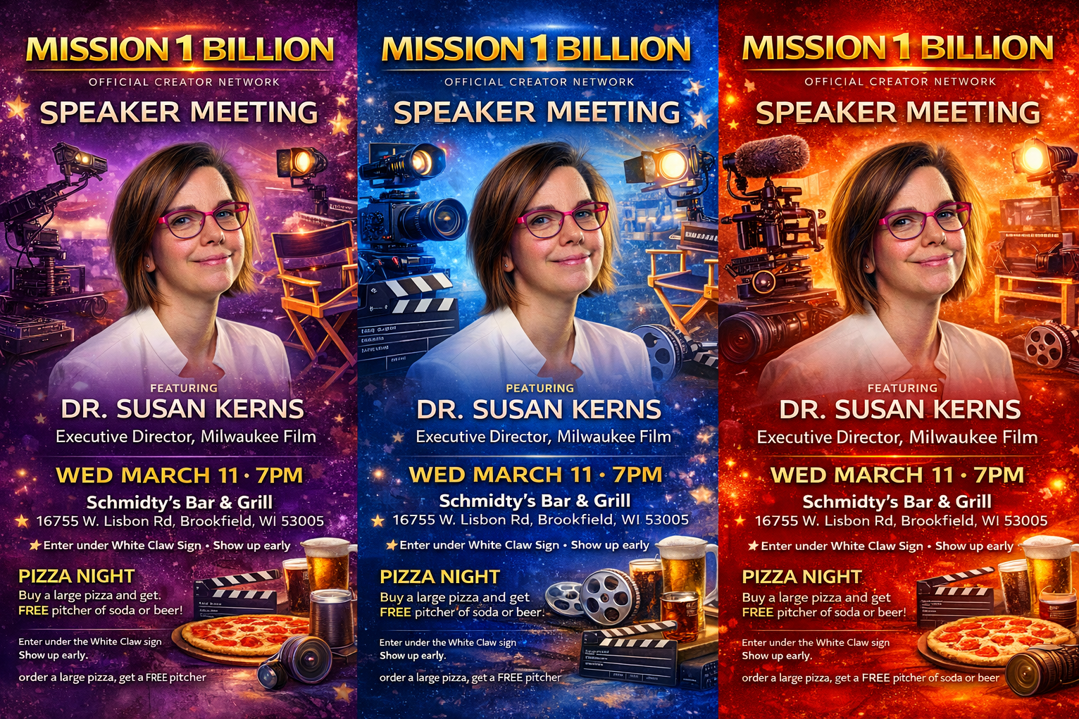 We are meeting at North American Camera 7pm SHARP! Wednesday Feb 11. Be one time please! Feel free to invite filmmaker friends! We want to thank Bob Donnelly for opening up his studio to us and hosting this Mission 1 Billion event!! Thanks Bob!!
