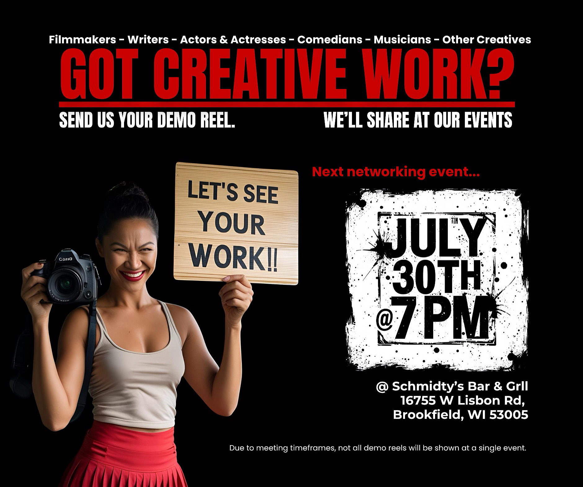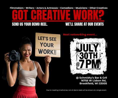 Wednesday August 6, 7-9 pm at Schmidty’s in Brookfield! We are in the side barroom. Put it on your calendar and make it a point to join us. To send reel link please email Mission1billionus@gmail.com